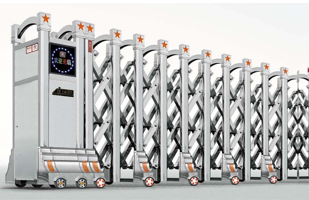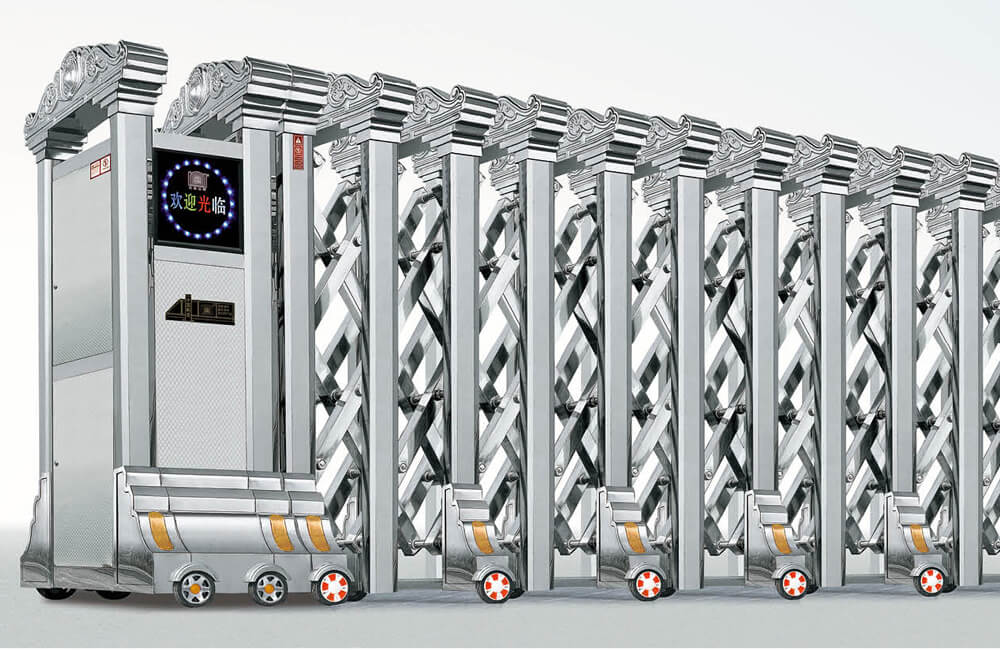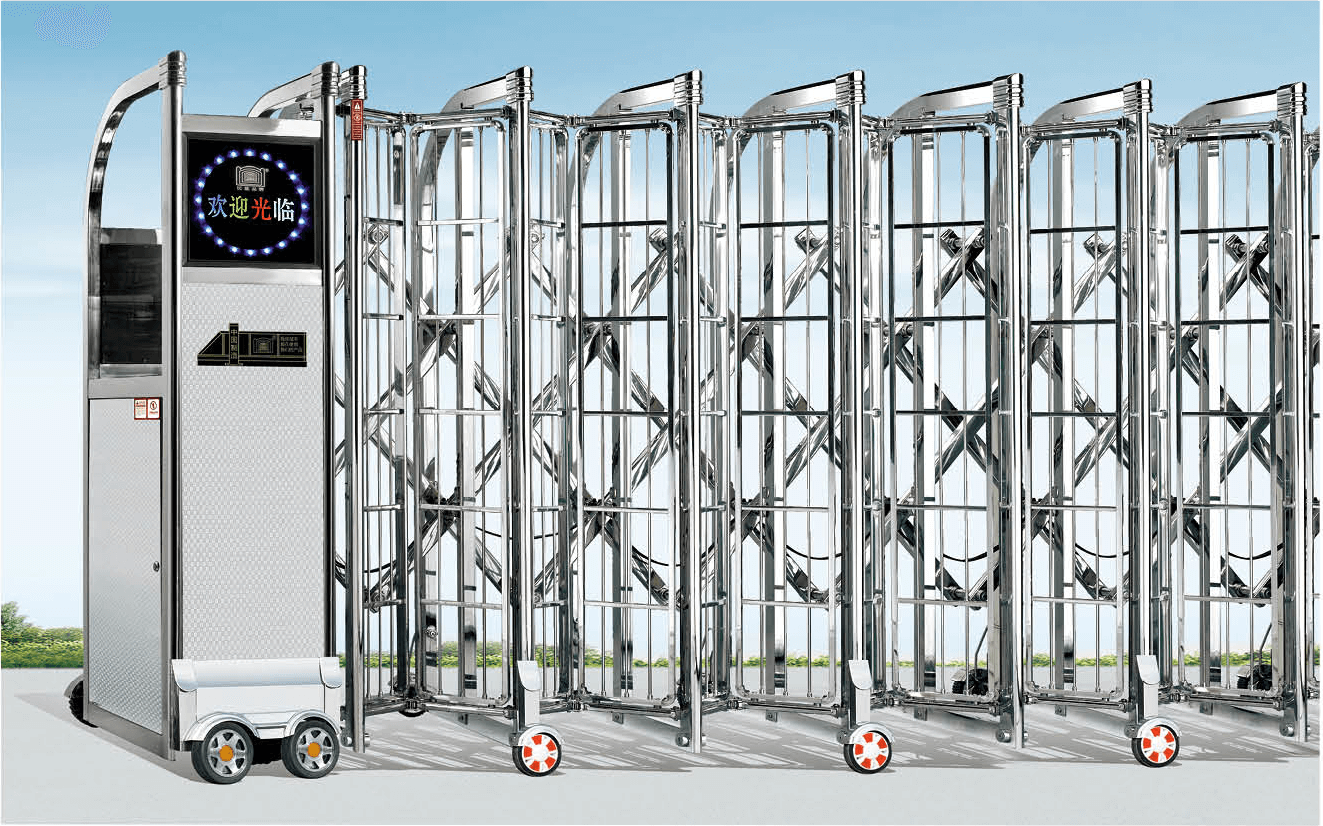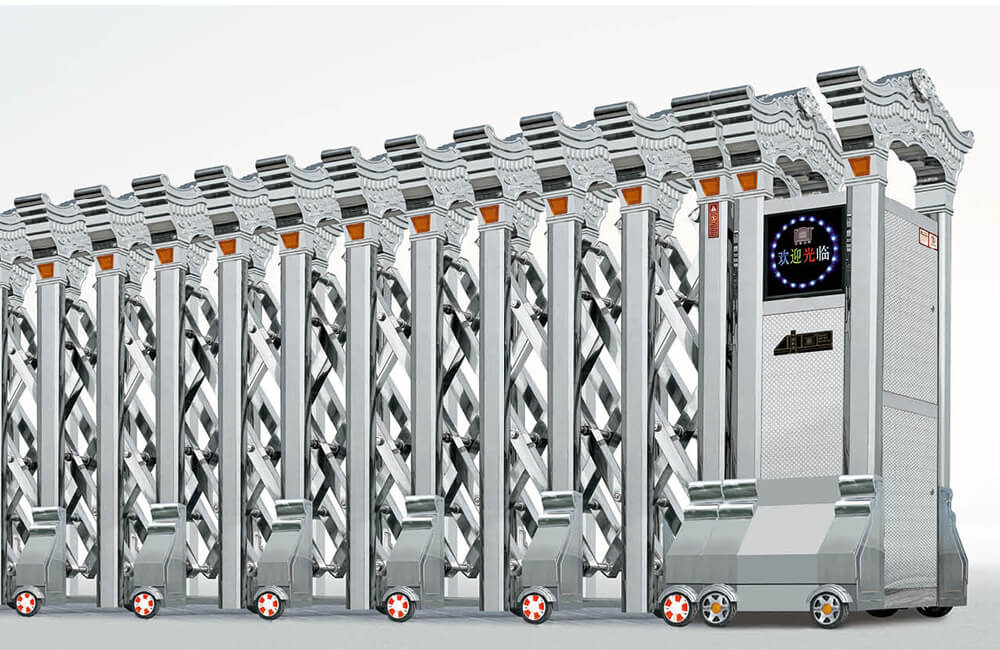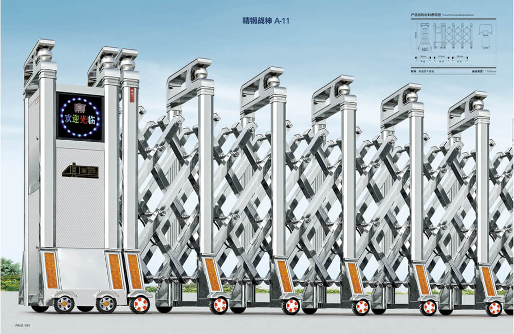 動(dòng)伸縮門主要有伸縮門體、機(jī)頭、控制器三部分組成。